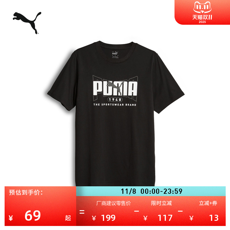纯棉黑色印花短袖T恤男子PUMA彪马官方新款运动上衣套头衫 686374