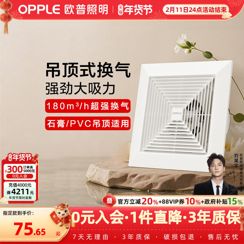 欧普照明普通石膏吊顶换气扇排气扇卫生间扣板排风扇厨房浴室吸顶