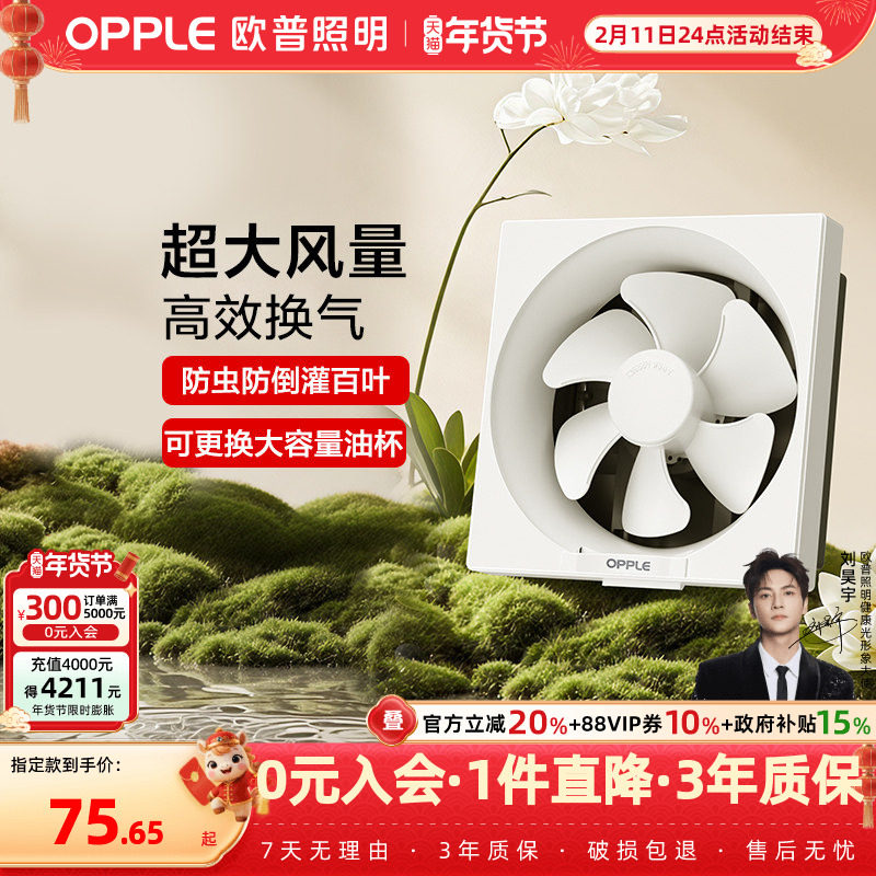 欧普照明窗墙两用格栅防护换气扇排气扇厨房浴室卫生间扣板排风扇