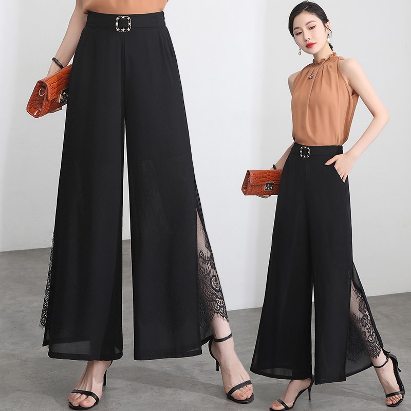 - 雪纺阔腿裤女夏九分 薄款 高腰