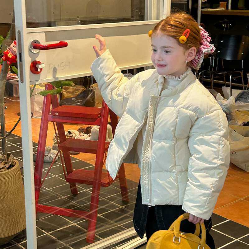2025冬季新款女童短款轻薄无领韩版绗线糖果色棉服外套棉袄保暖韩