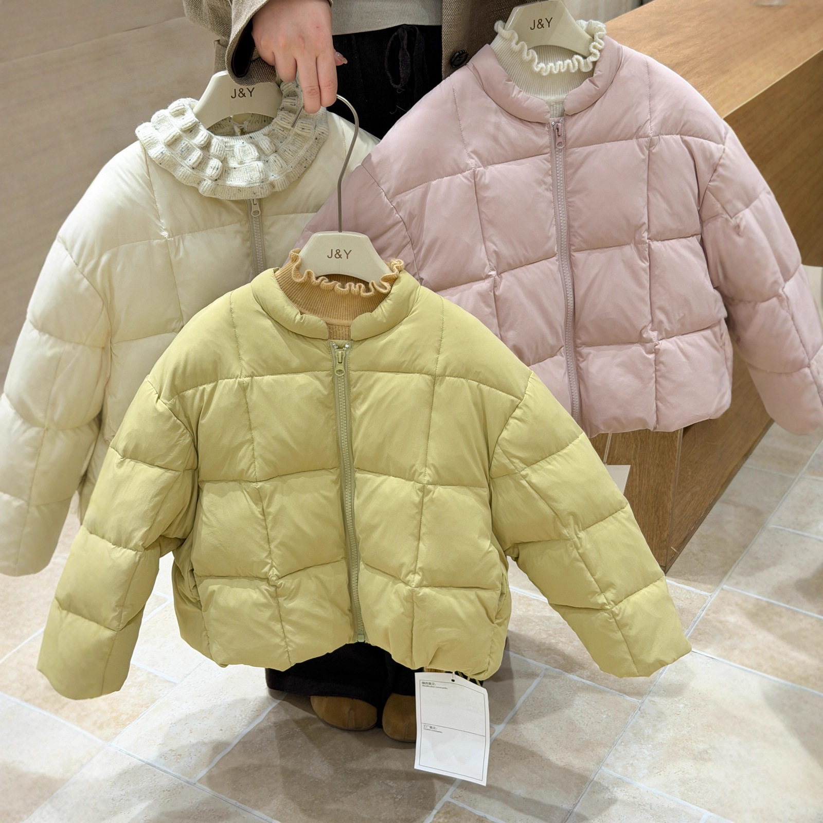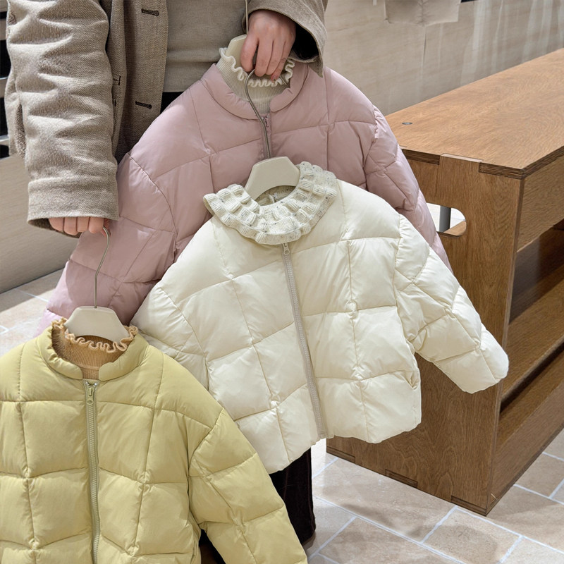 2025冬季新款女童短款轻薄无领韩版绗线糖果色棉服外套时尚韩版