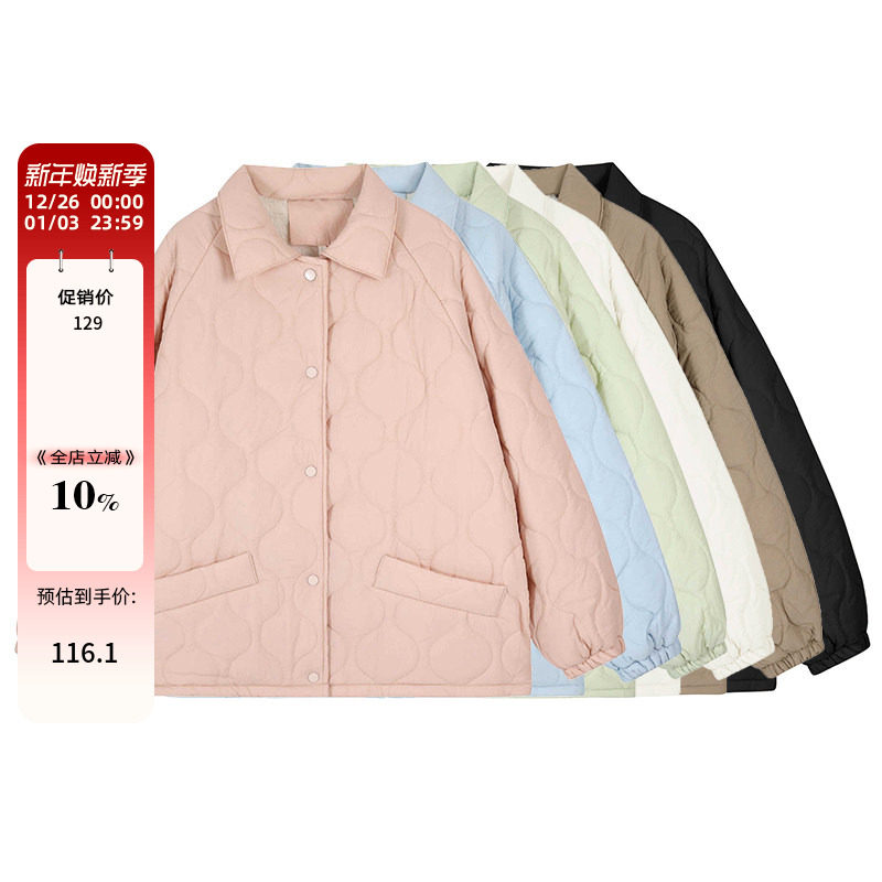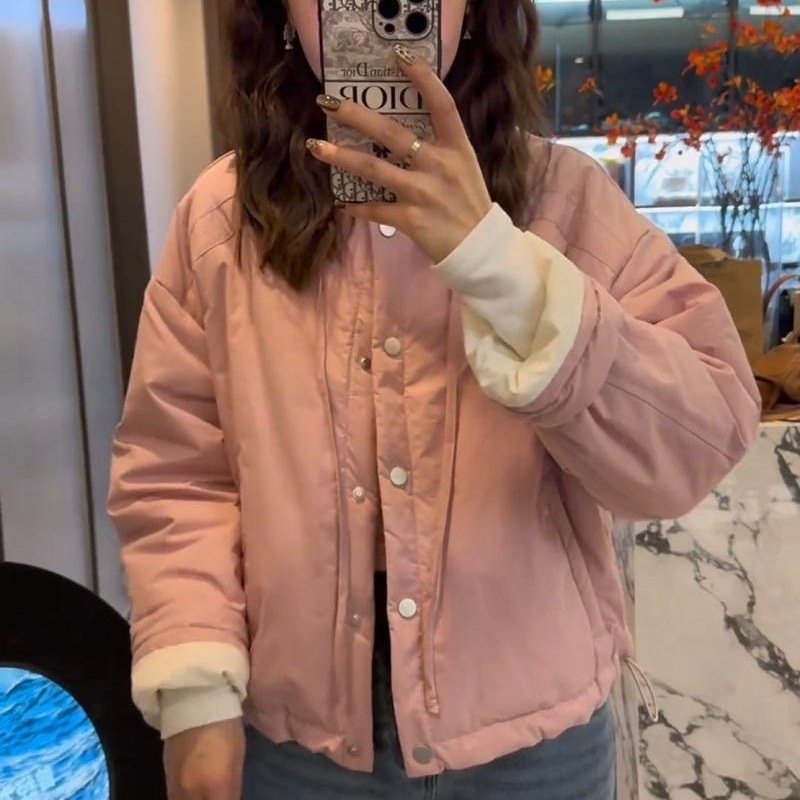 2025年冬季新款韩版糖果色翻领短款轻薄棉服女装宽松休闲棉服外套