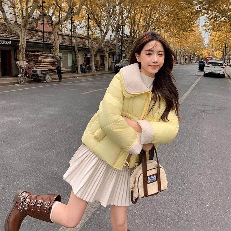 2025秋冬新款韩版糖果色小翻领短款棉服加厚保暖服女宽松休闲外套