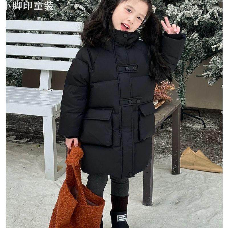 2025中大童女童2025新款中长款韩版棉服糖果色洋气加厚外套