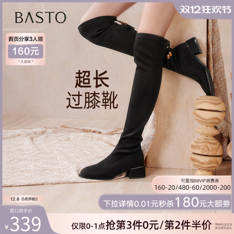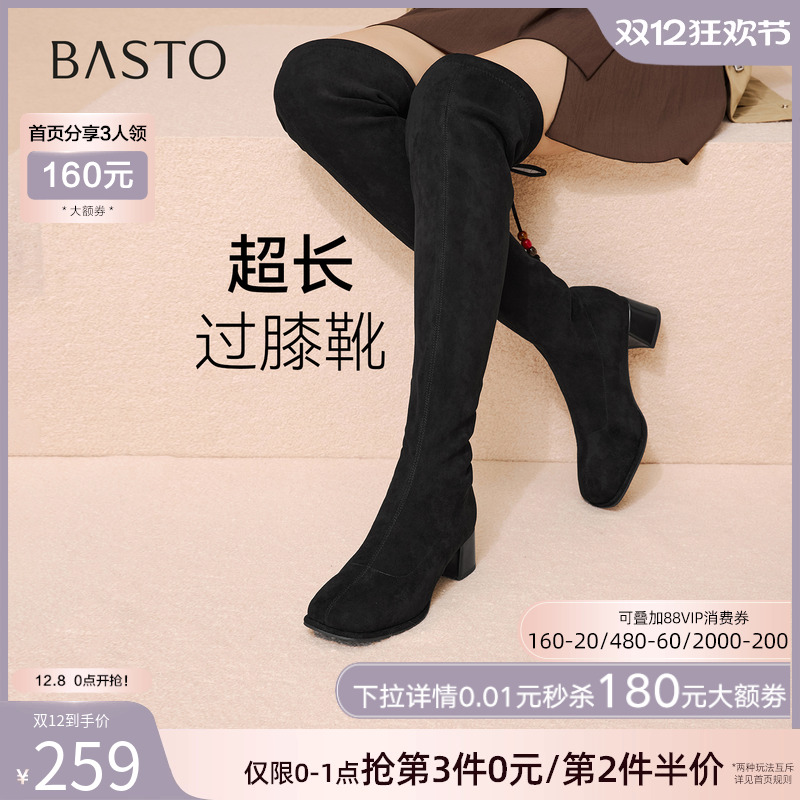 百思图2025冬季新款圆头粗跟弹力靴瘦瘦靴过膝靴女超长靴E5615DC5