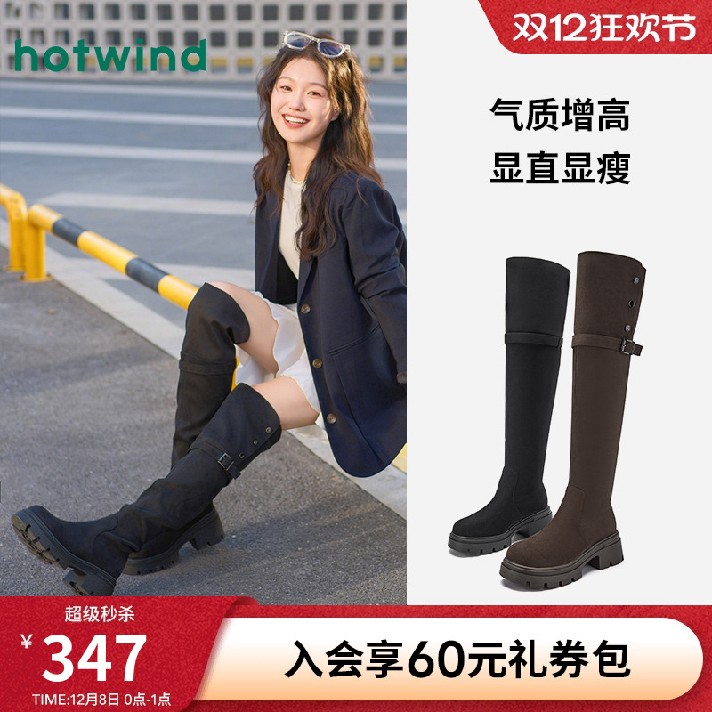 热风厚底长筒靴女款2024年冬季新款显瘦长靴过膝弹力靴显高袜靴