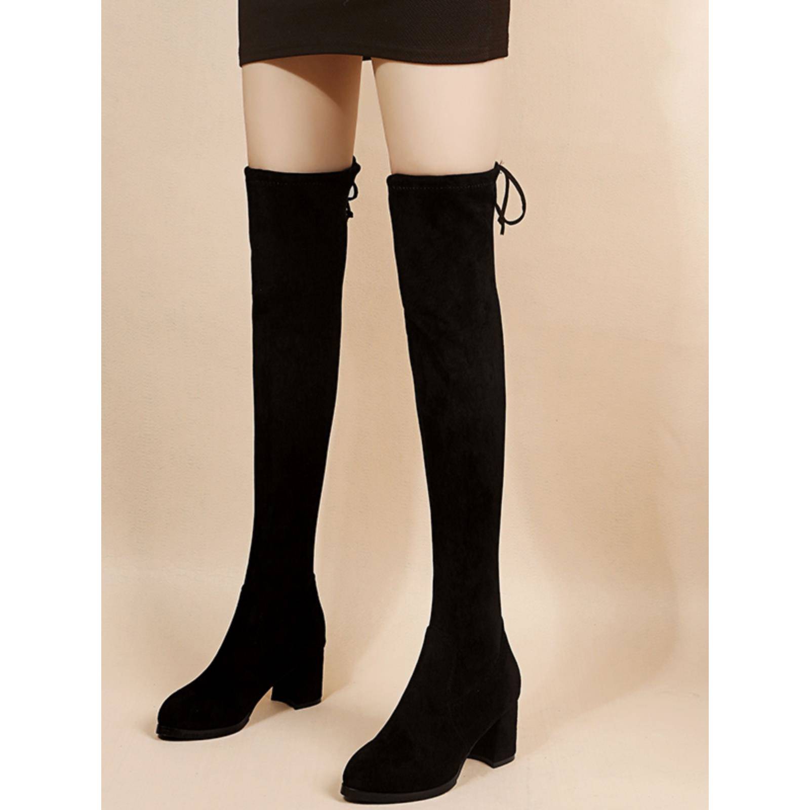 2023秋冬季新款小辣椒粗跟过膝长靴女士黑色低跟瘦腿长筒靴子棉靴