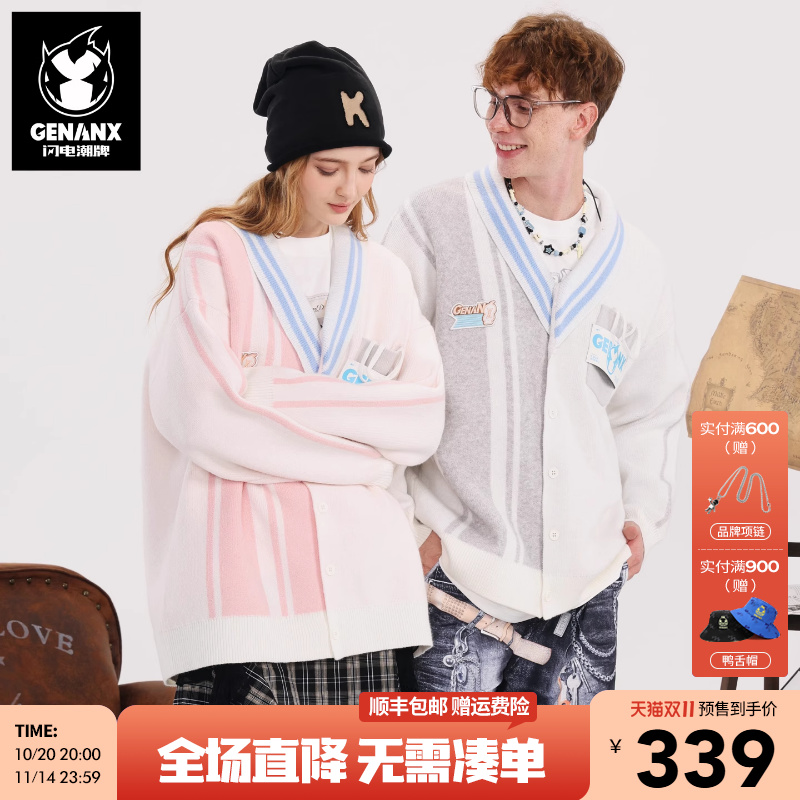 GENANX闪电潮牌长袖针织衫运动毛衣秋冬季男女情侣新款杨博文同款