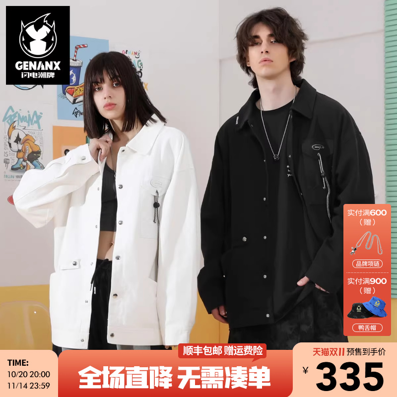 GENANX闪电潮牌翻领宽松男士休闲夹克外套女高级感黑白色秋冬新款