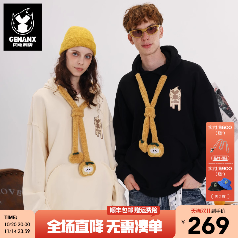 【明星同款】GENANX闪电潮牌加厚加绒情侣卫衣男女爆款秋冬季连帽