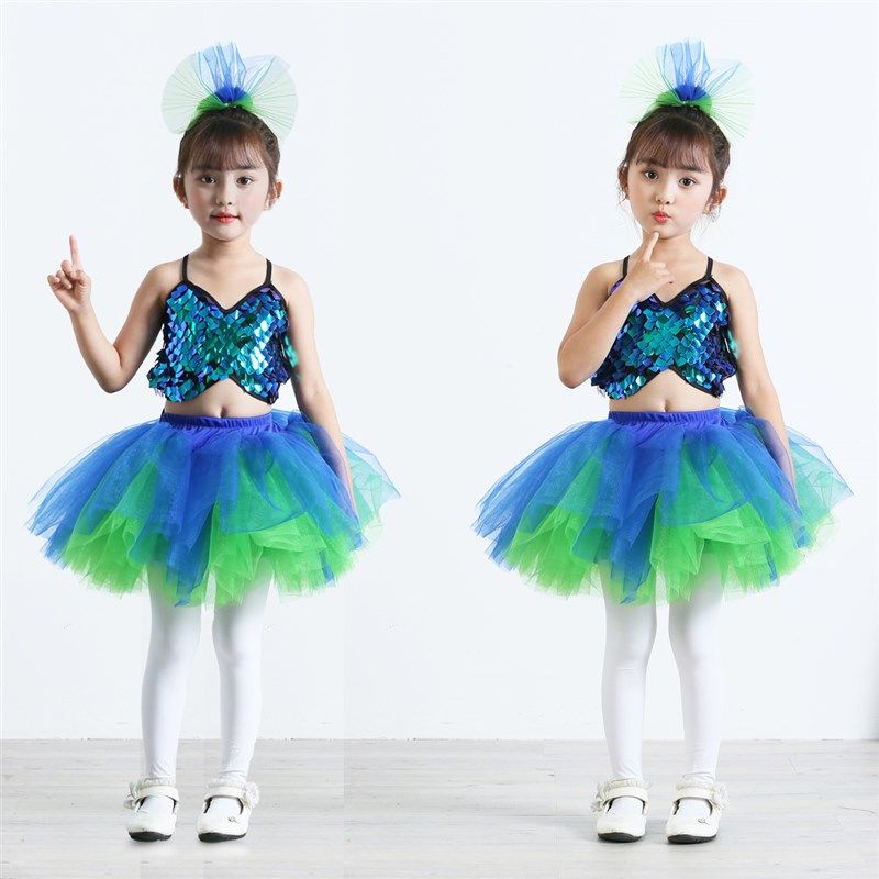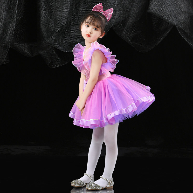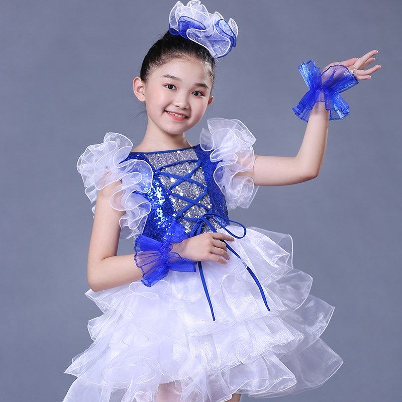 女童现代舞表演服装亮片幼儿园舞蹈舞台装合唱儿童演出服蓬蓬纱裙