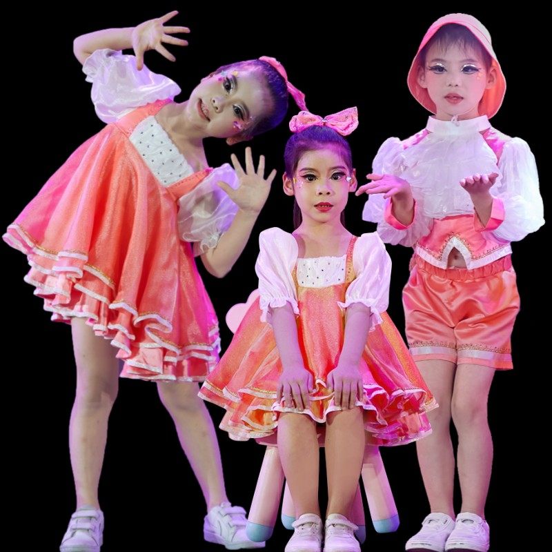 元旦儿童演出服蓬蓬纱裙无敌小可爱新款粉色公主裙幼儿园舞蹈俏皮