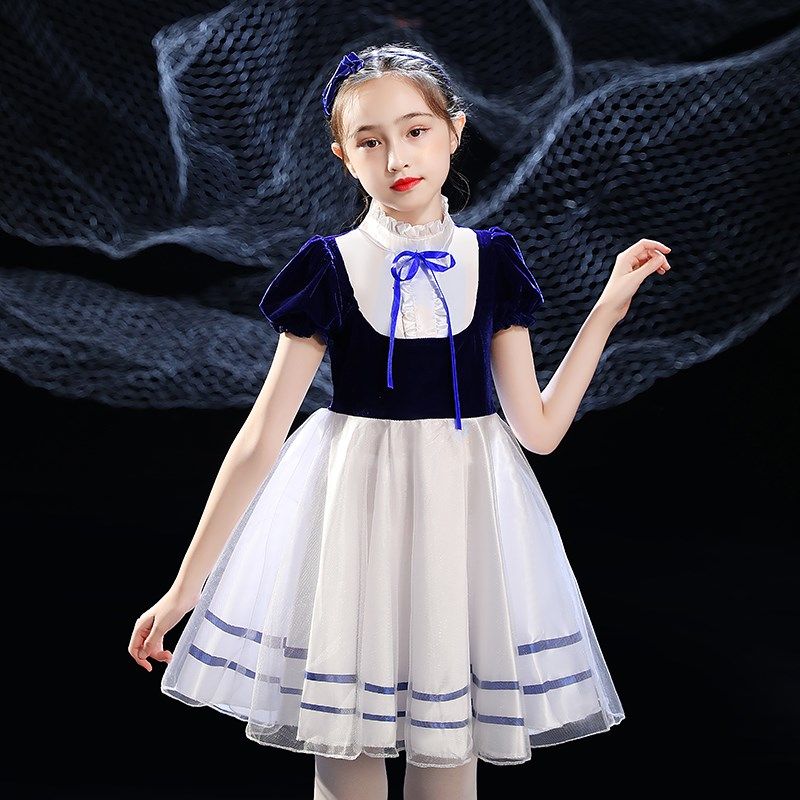 网红款新款儿童演出服蓬蓬纱裙连衣裙女中小学生诗歌朗诵演合唱服