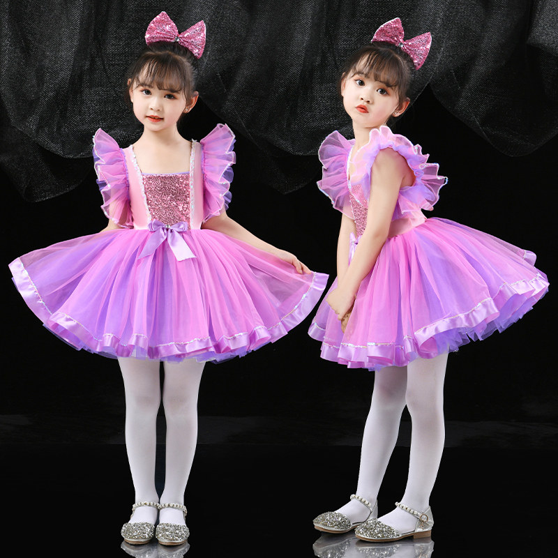 儿童演出服蓬蓬纱裙六一幼儿园紫色舞蹈表演服女童亮片公主连衣裙