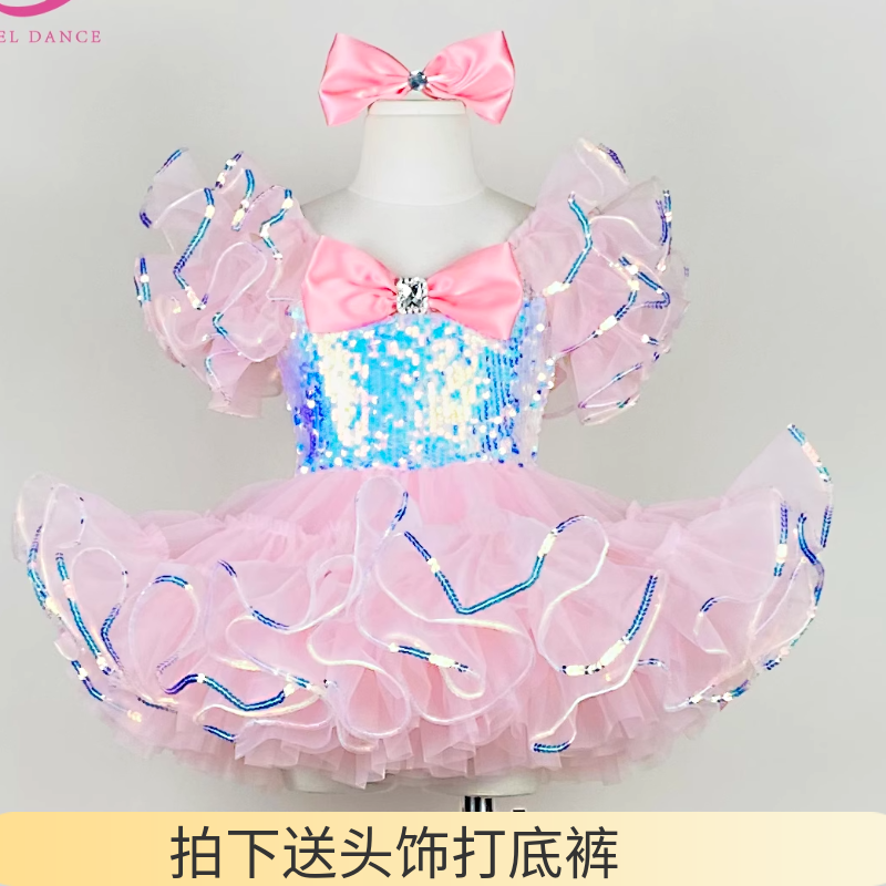 新款六一儿童演出服蓬蓬纱裙幼儿园可爱粉舞蹈裙亮片爵士舞表演服
