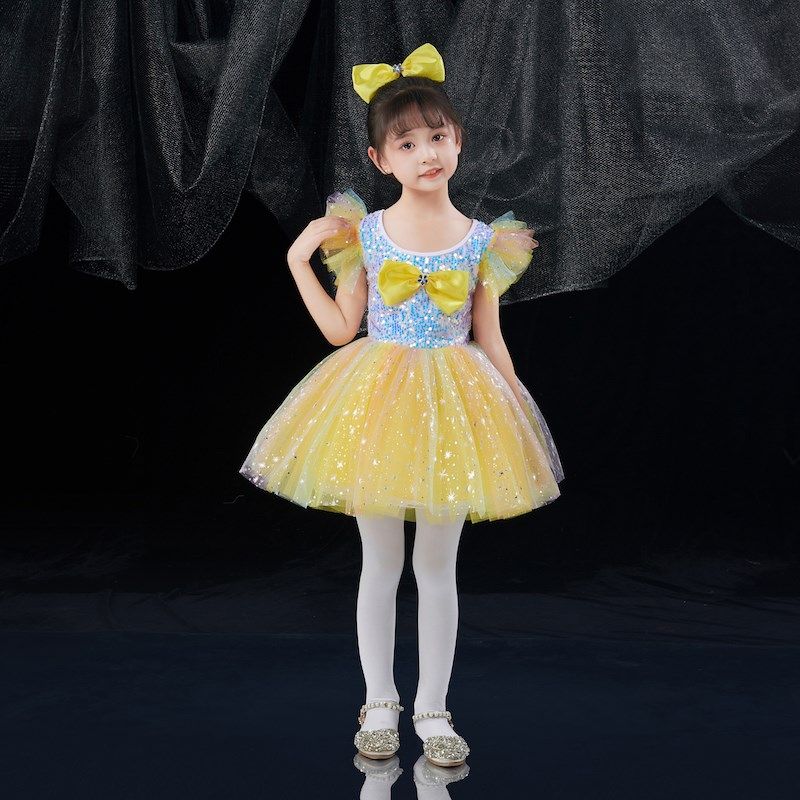 六一女童公主裙演出服快乐的小星星黄色蓬蓬纱裙幼儿园舞蹈表演服