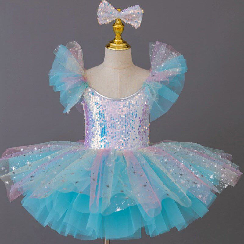 高档一儿童演出服蓬蓬纱裙女亮片幼六园舞蹈表演儿服童公主芭蕾舞