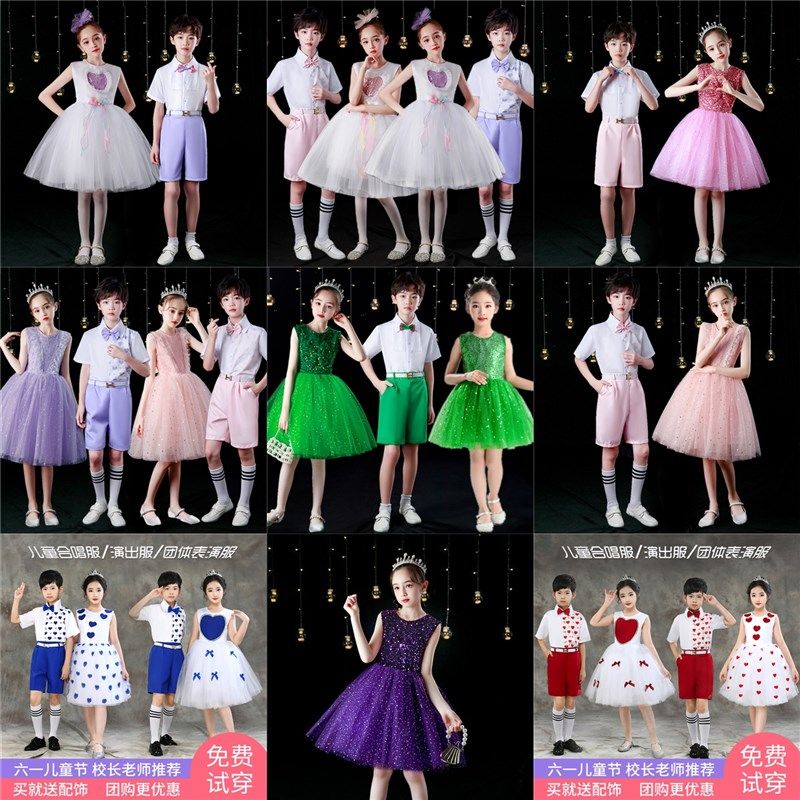 六一儿童演出服蓬蓬纱裙再见幼儿园舞蹈服男女合唱服公主裙表演服
