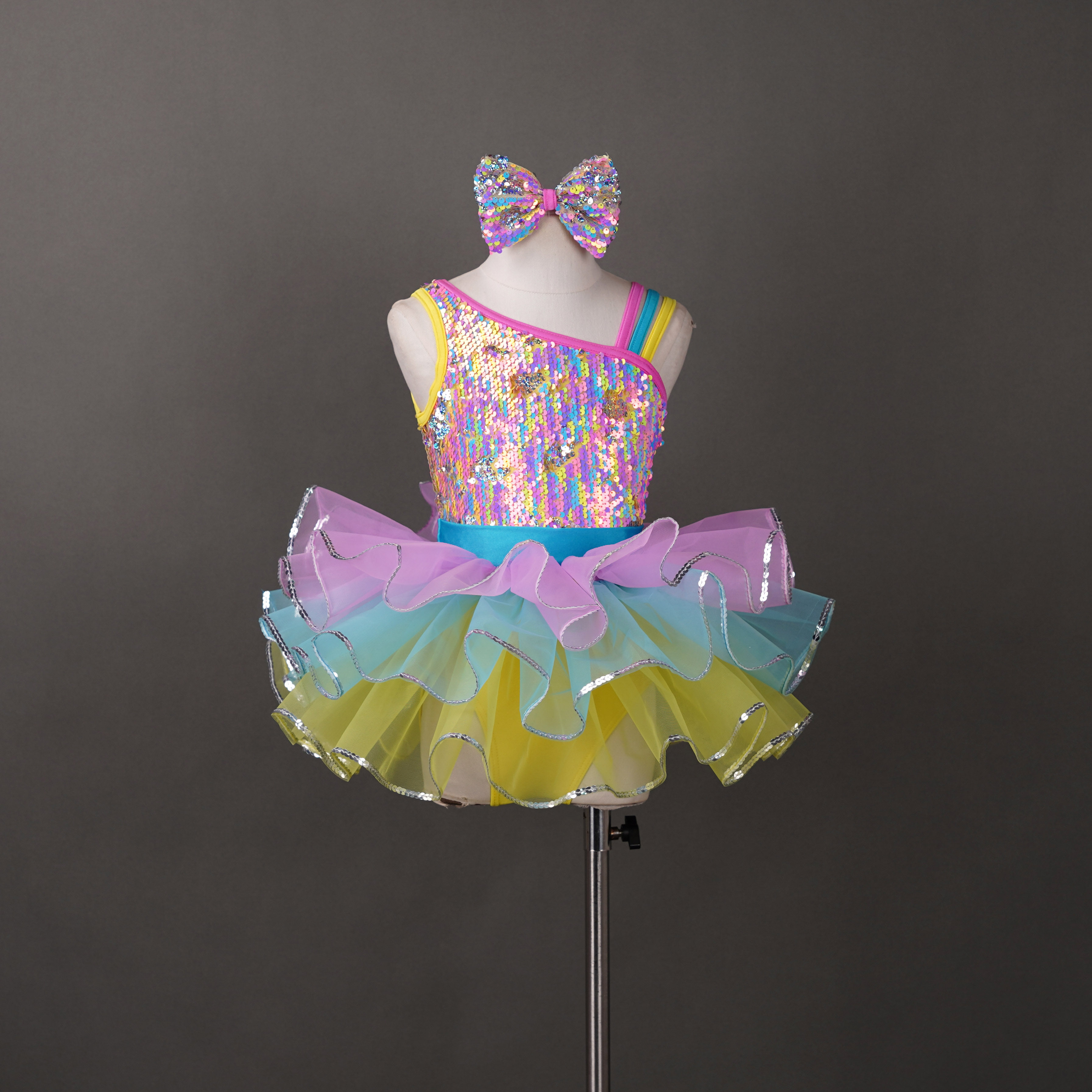 儿童芭蕾舞裙女童蓬蓬纱裙表演服七彩可爱合唱礼服公主裙演出服装