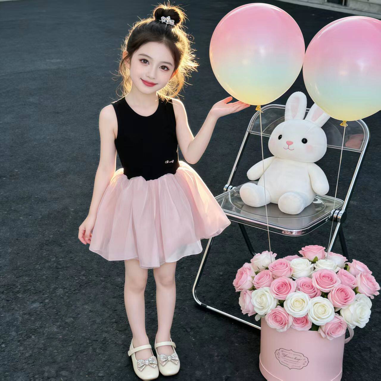 女童公主裙礼服2025新款白色裙子儿童洋气女孩夏季蓬蓬纱裙连衣裙