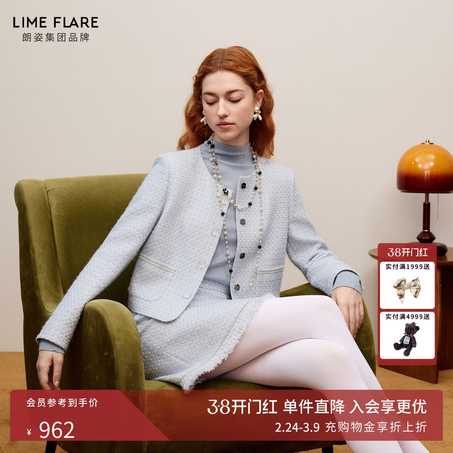 朗姿/莱茵福莱尔法式粗花呢蓝色小香风套装裙时尚气质名媛外套秋