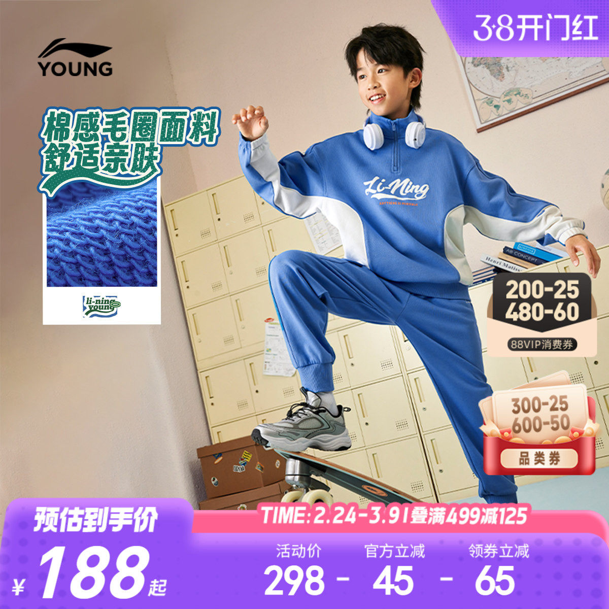 李宁儿童运动套装2026新款春秋款男童装青少年卫衣裤子2件套春装