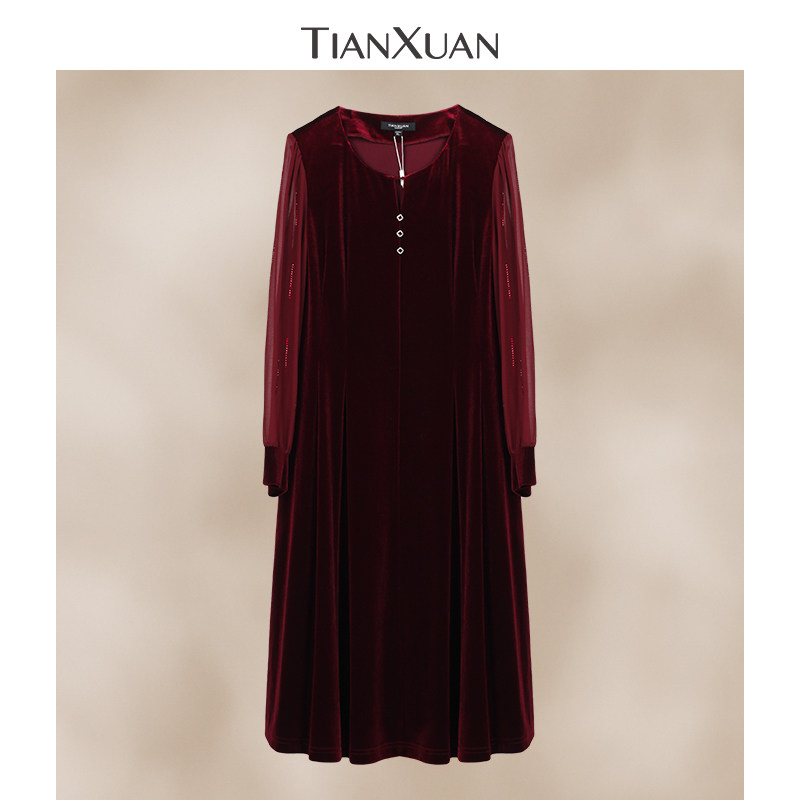 天轩商场同款春秋女长袖连衣裙时尚礼服高级拼色妈妈装TGQD6066