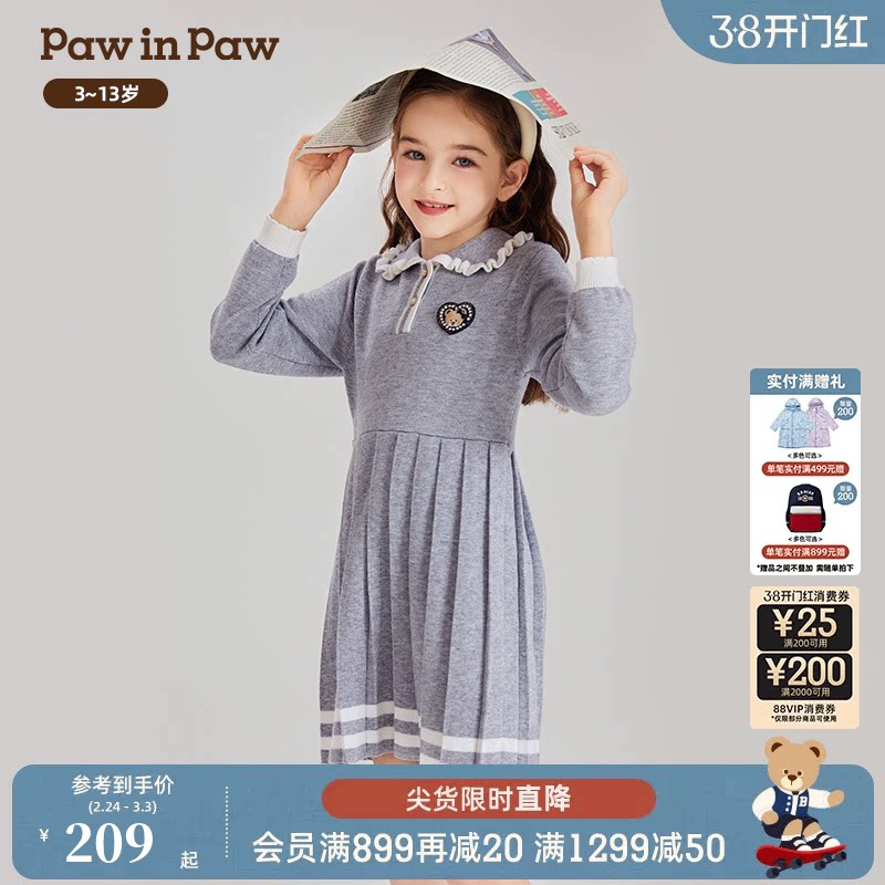 pusumede 法式气质长袖针织连衣裙女收腰显瘦a字圆领打底裙短裙子