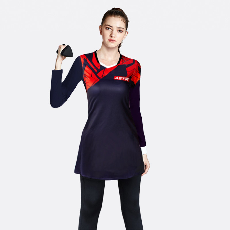 羽毛球服女长袖连衣裙套装运动速干韩国网球团购定制大码比赛球衣