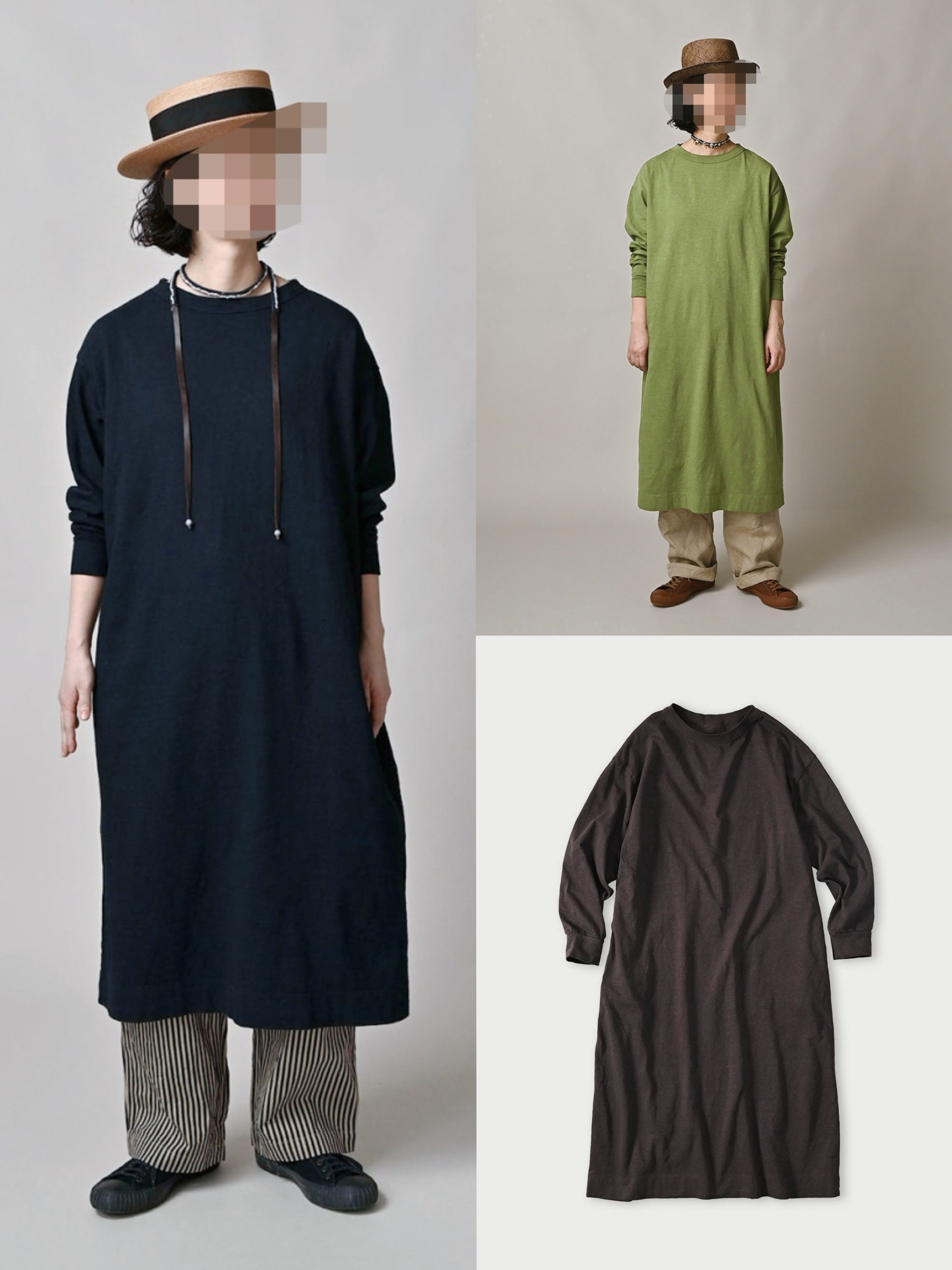 日系2026新款45R女长袖连衣裙船领套头宽松休闲中长款竹节棉T恤裙