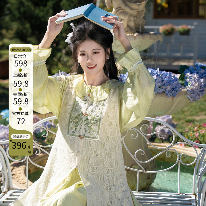 汉尚华莲[小裙仙]原创汉服女长袖连衣裙蕾丝长比甲日常套装春秋