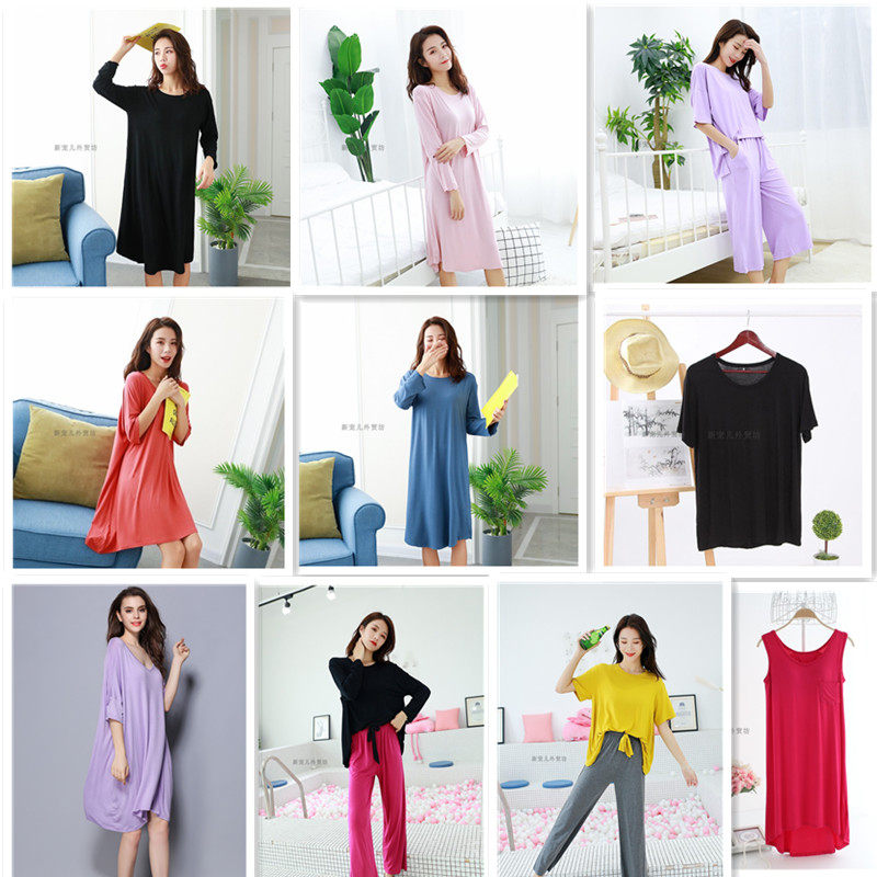 断码清仓 莫代尔女长袖连衣裙中长款半袖长裤套装男士薄款五分裤