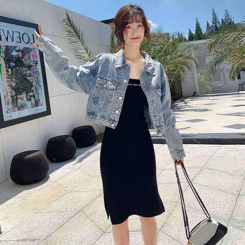 学生夹克2020牛仔外套蝙蝠袖女宽松短款黑色韩版新款bf港风春秋潮