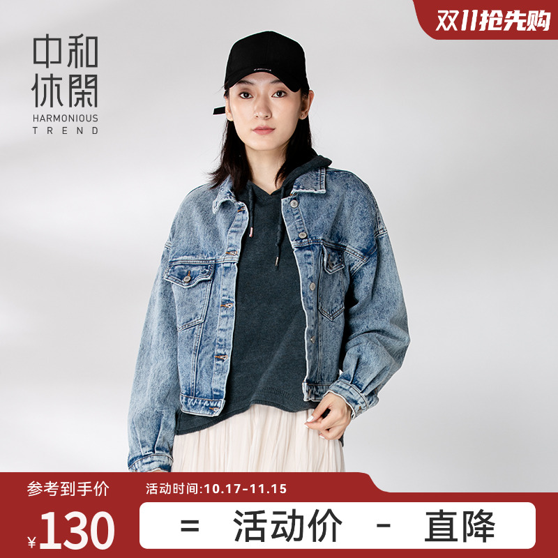 中和休闲女短款宽松显瘦蝙蝠袖牛仔外套秋季新款上衣A6123023