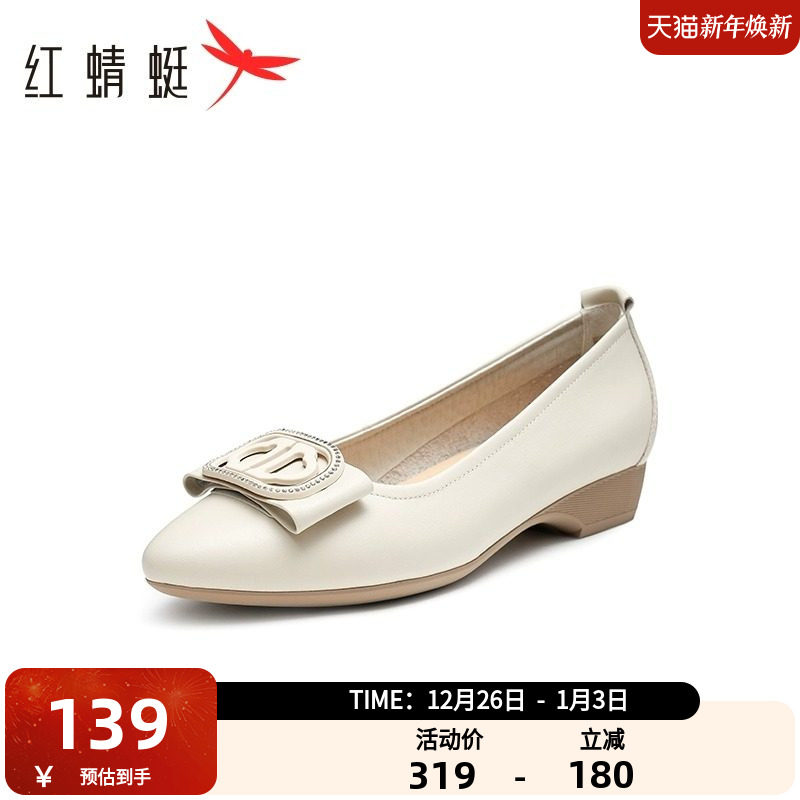 达芙妮尖头单鞋女真皮2025新款春秋浅口坡跟不累脚软皮舒适妈妈鞋
