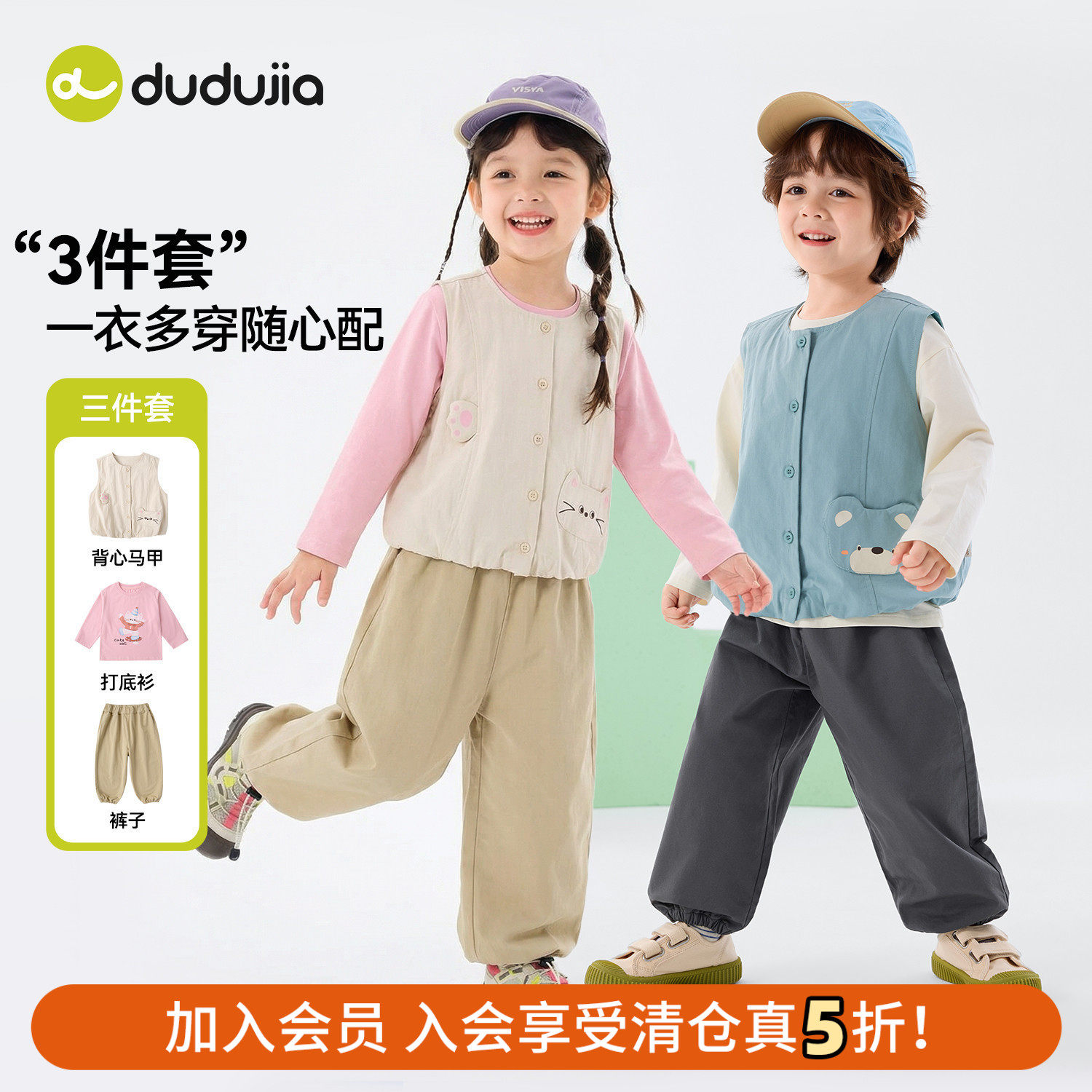 嘟嘟家儿童套装春秋款女童马甲T恤裤子女童时尚三件套宝宝春装潮