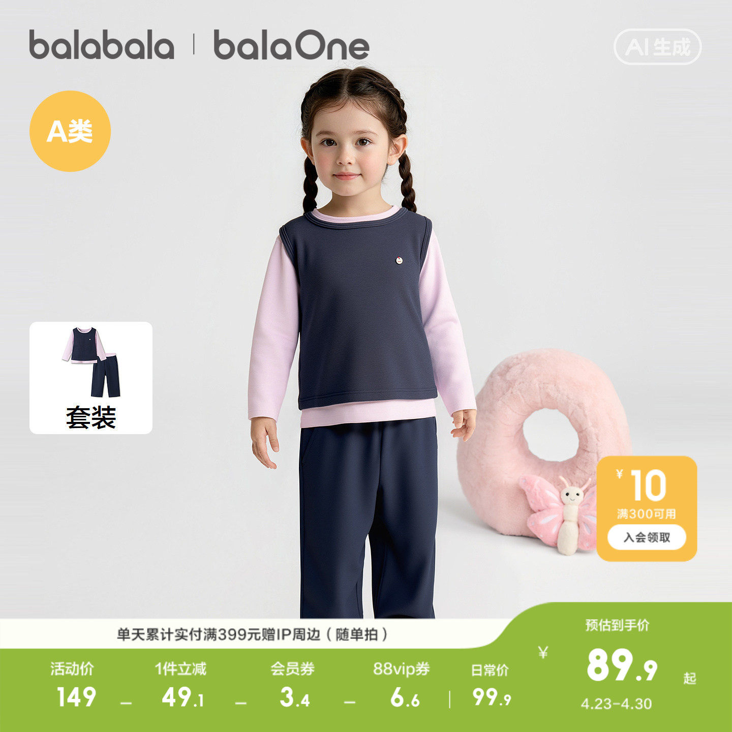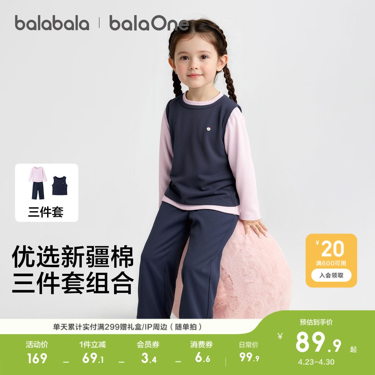 【balaOne】巴拉巴拉儿童家居服套装女童2026新款春装三件套百搭