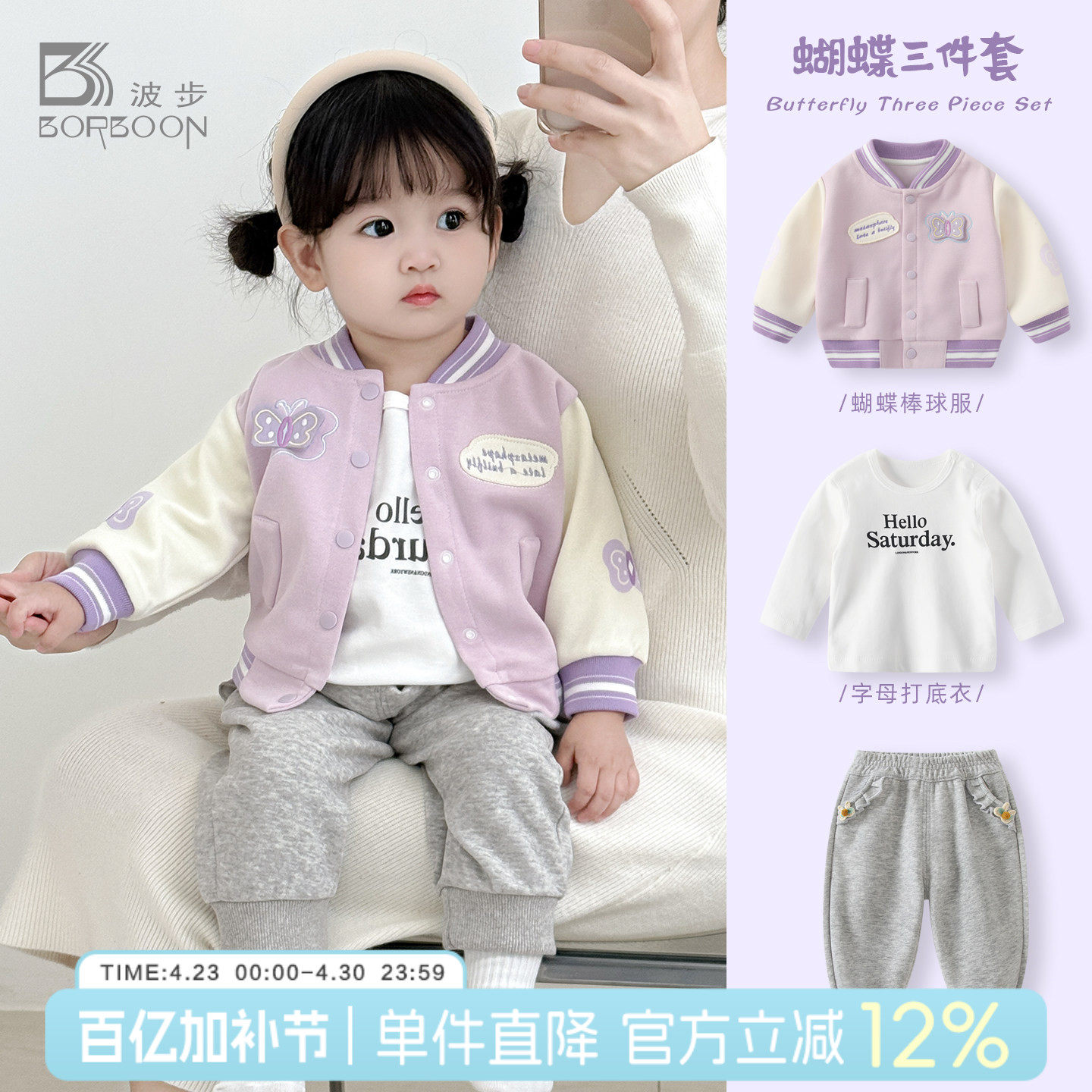 宝宝套装2026新款春装外套女童夹克棒球服上衣婴儿春季分体三件套