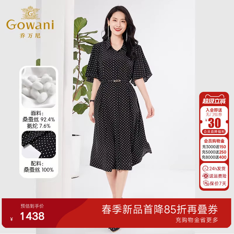 乔万尼真丝桑蚕丝连衣裙新款商场同款高档收腰中长裙子EF2E395