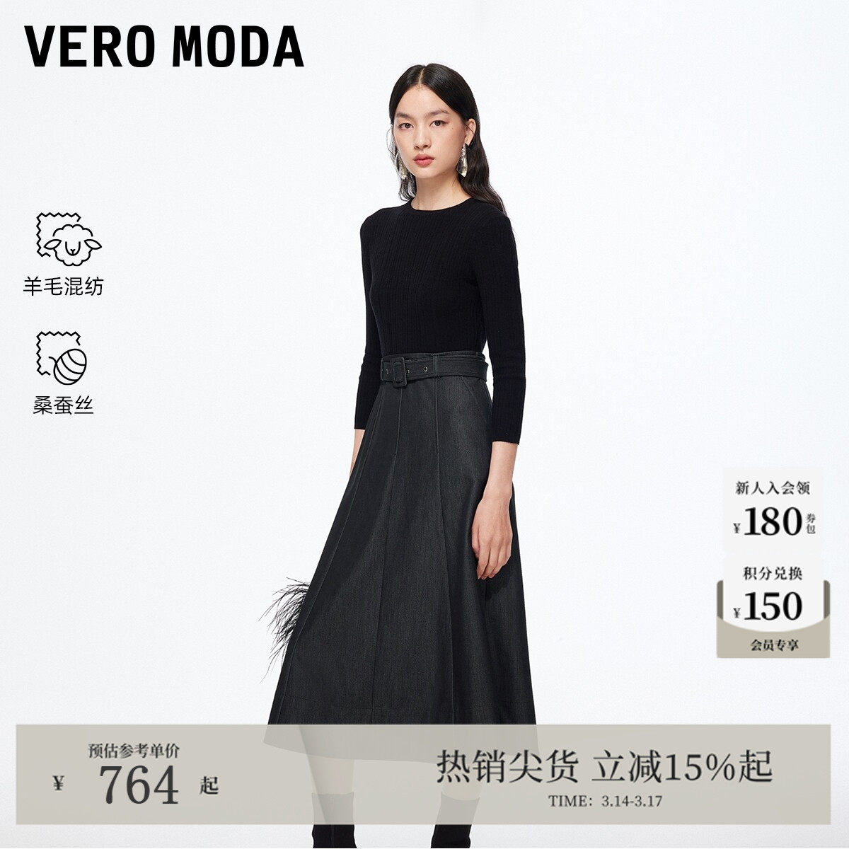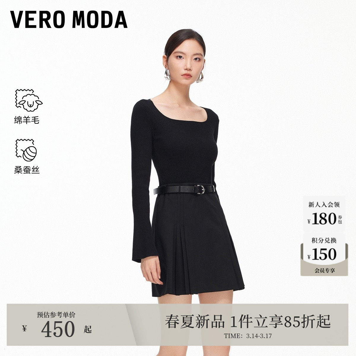 Vero Moda连衣裙女2026春季新款含绵羊毛桑蚕丝淑女风腰带针织裙