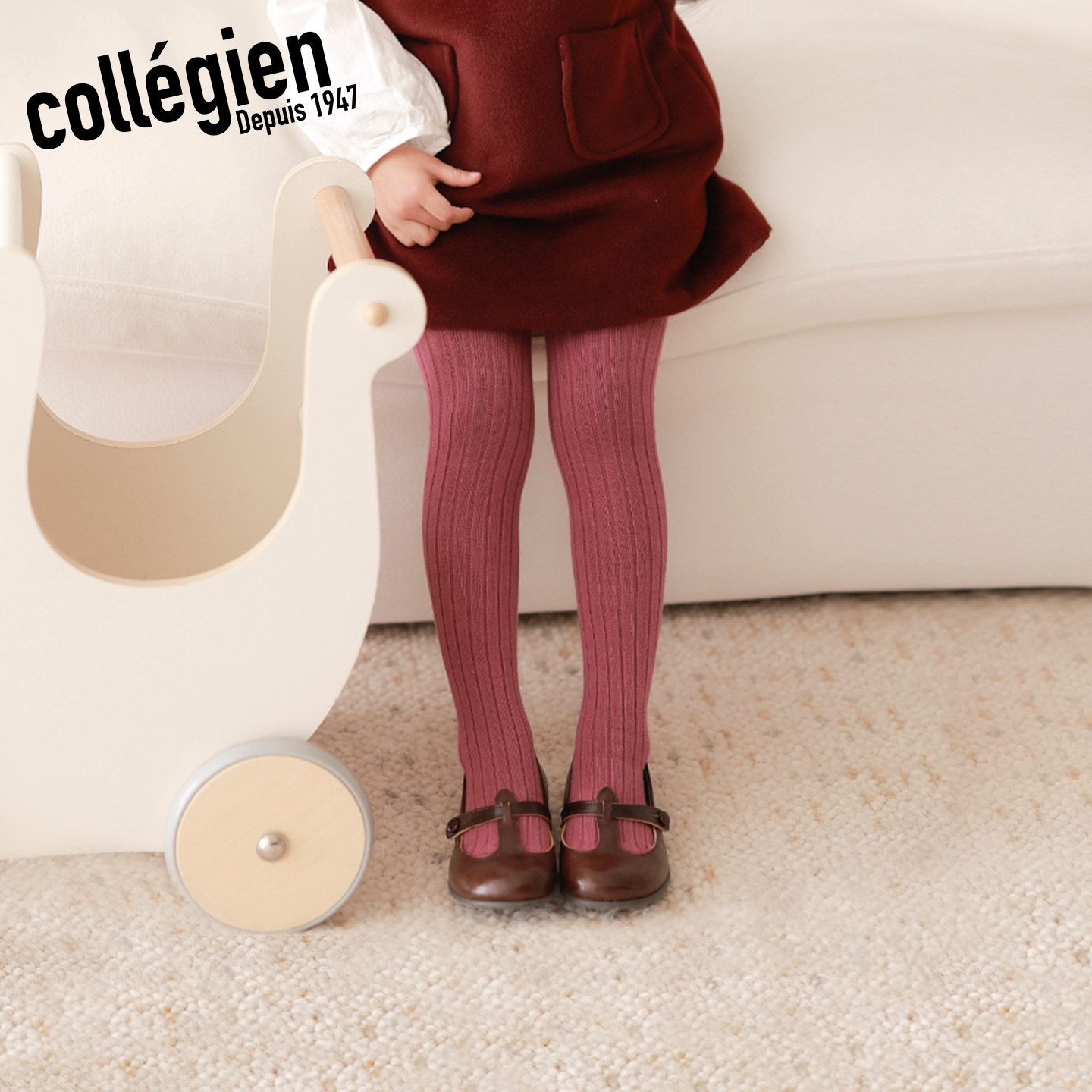法国Collegien女童连裤袜春秋款埃及长绒棉打底裤宝宝裤袜可外穿