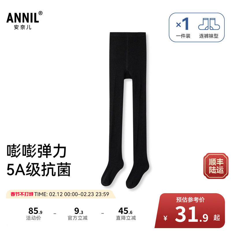 安奈儿童装女童连裤袜春秋弹力贴身透气5A抗菌透气黑色白色长袜