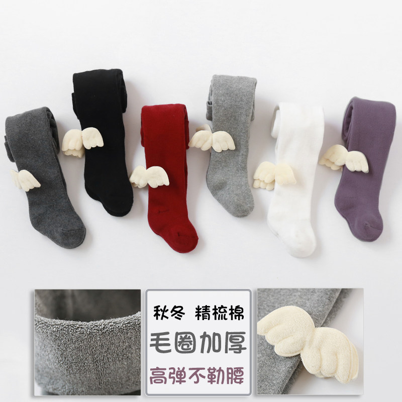 女童连裤袜春秋冬季公主婴儿打底薄绒纯棉女宝宝白色儿童毛圈加厚