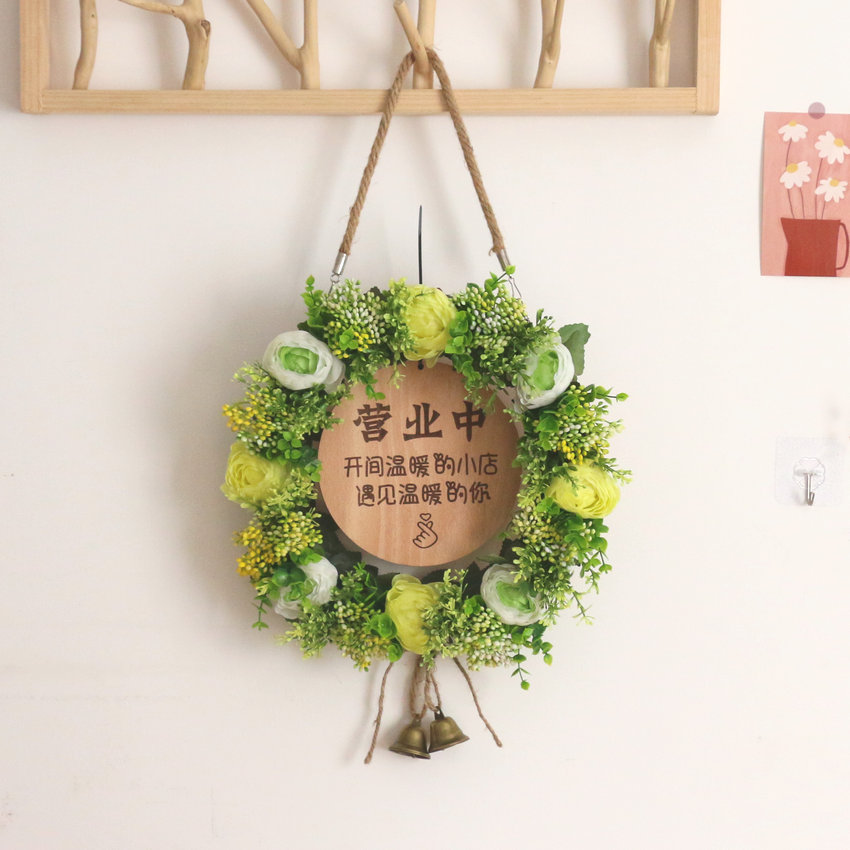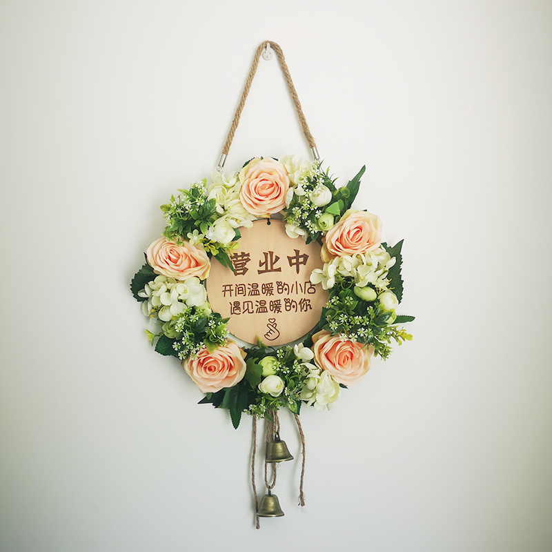 欢迎光临挂牌花环个性定制门牌花店指示牌木质营业中二维码牌定制