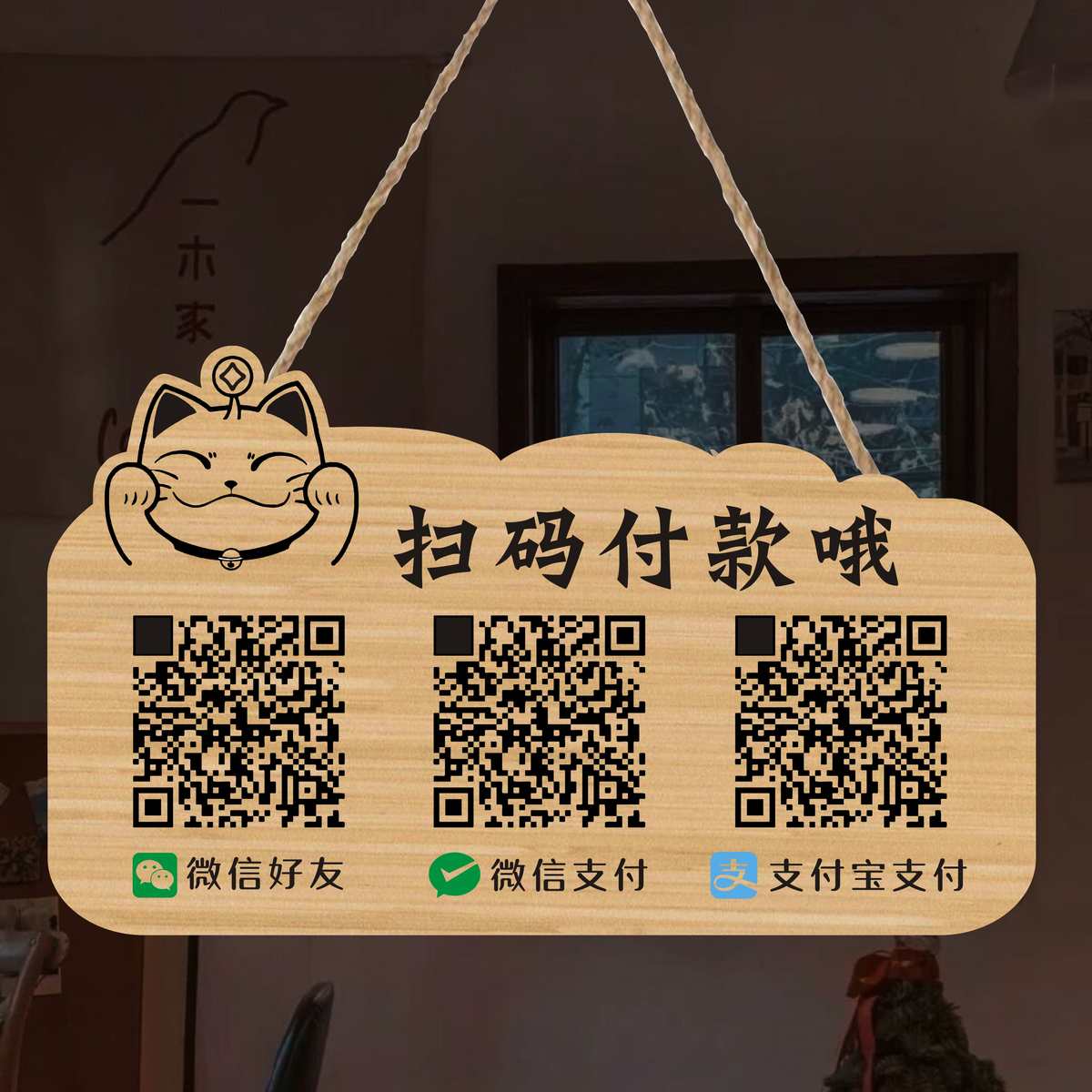 创意木质挂牌收款二维码牌定制商家微信支付宝收钱码无线网提示牌