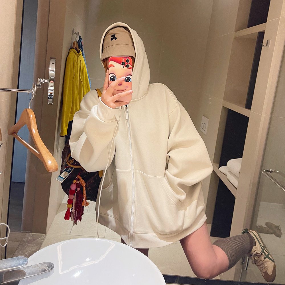 KOGIRL韩系东大门休闲宽松廓形连帽百搭款拉链短款舒适卫衣外套女