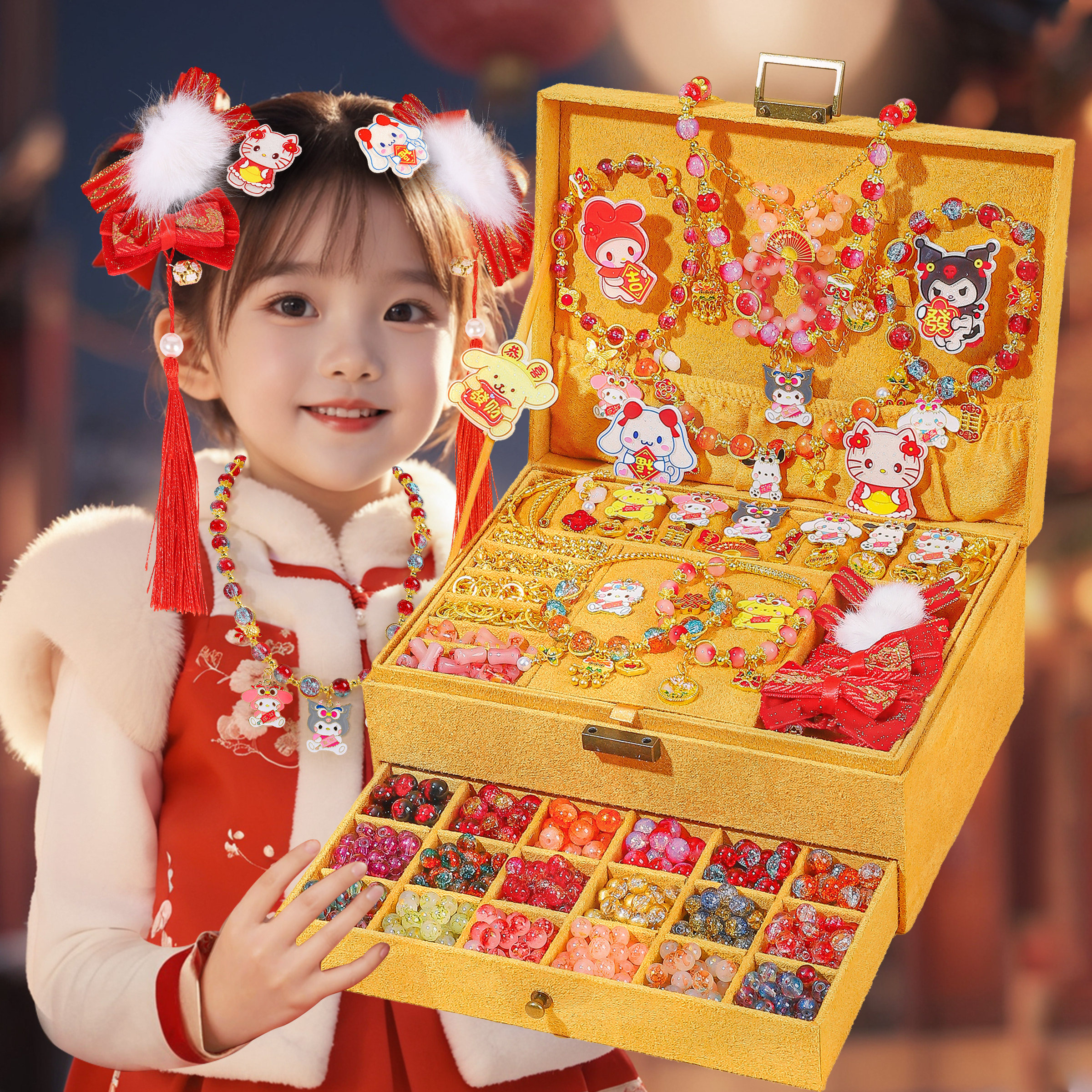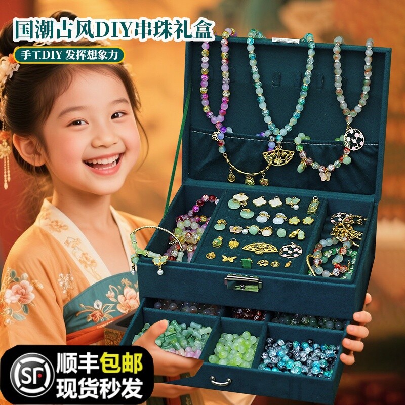 手工diy穿珠子材料8岁女孩串珠礼盒古风宝藏首饰盒女童手链百宝箱
