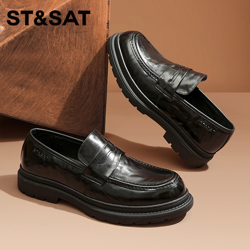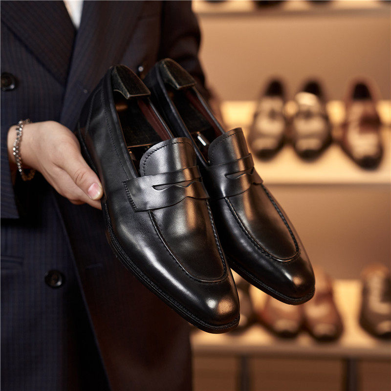 CW新款便士乐福鞋男真皮鞋英伦厚底一脚蹬正装商务懒人套脚高端