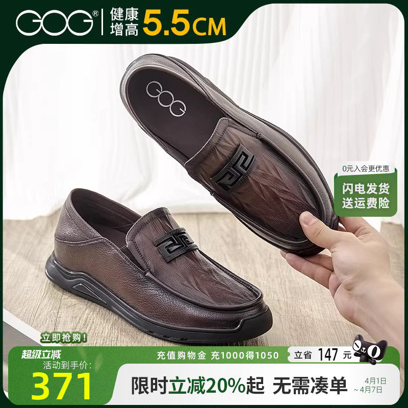 高哥内增高男鞋英伦乐福鞋一脚蹬鞋子休闲豆豆鞋真皮驾车鞋懒人鞋